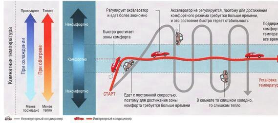 Производители утверждают, что инверторные кондиционеры экономят до 30% электроэнергии. Однако важно понимать, что такая экономия возможна только при длительной и непрерывной работе. Кроме того, часть энергии уходит на охлаждение электронной платы, которая нагревается в процессе работы.